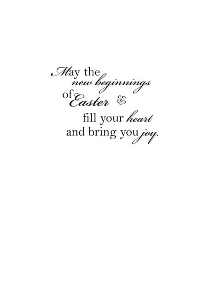 Card inside says: May the new beginnings of Easter fill your heart and bring you joy.