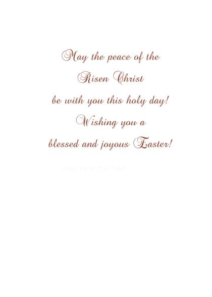 Card inside says: May the peace of the Risen Christ be with you this holy day! Wishing you a blessed and joyous Easter!