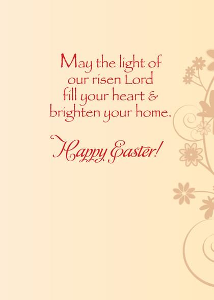 Card inside says: May the light of our risen Lord fill your heart & brighten your home. Happy Easter!