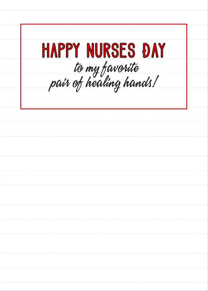 Card inside says: HAPPY NURSES DAY to my favorite pair of healing hands!