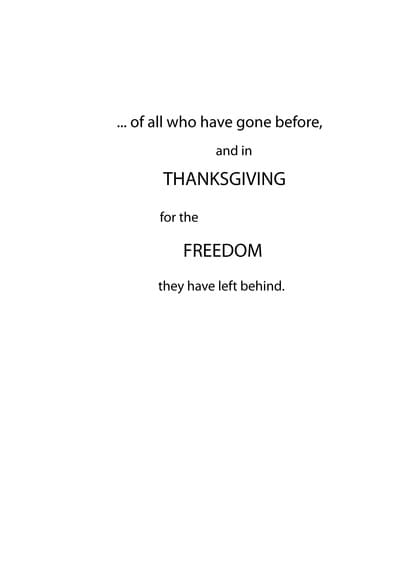 Card inside says: ... of all who have gone before, and in THANKSGIVING for the FREEDOM they have left behind.