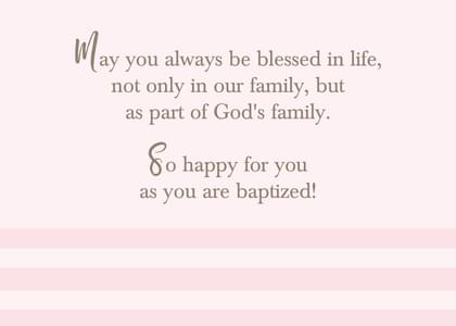 Card inside says: May you always be blessed in life, not only in our family, but as part of God's family. So happy for you as you are baptized!