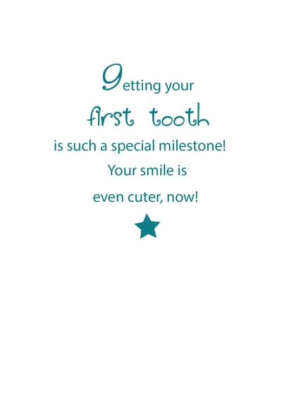 Card inside says: Getting your first tooth is such a special milestone! Your smile is even cuter, now!