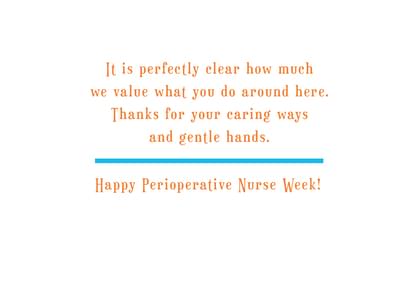 Card inside says: It is perfectly clear how much we value what you do around here. Thanks for your caring ways and gentle hands. Happy Perioperative Nurse Week!