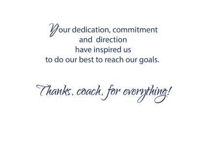Card inside says: Your dedication, commitment and direction have inspired us to do our best to reach our goals. Thanks, coach. for everything!