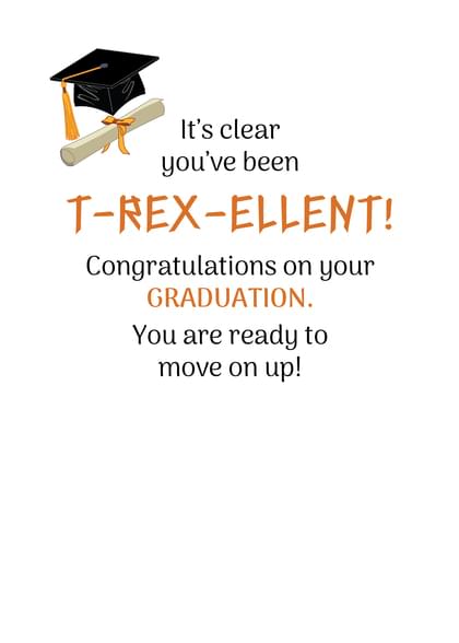 Card inside says: It's clear you've been T-REX-ELLENT! Congratulations on your GRADUATION. You are ready to move on up!