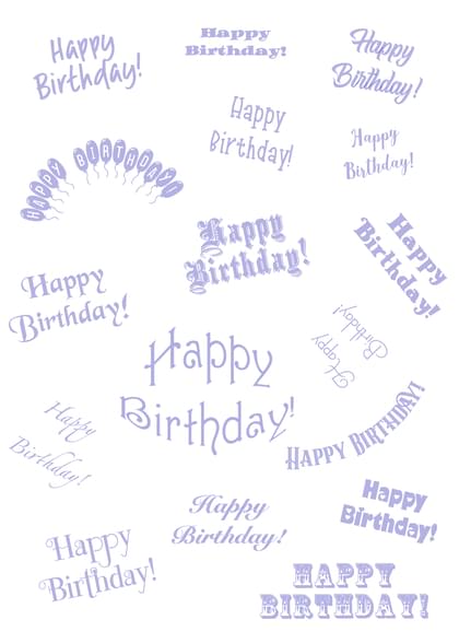 Card inside says: Happy Birthday! Happy Birthday! Happy Birthday! Happy Birthday! Happy Birthday Happy Birthday! HAPPY BIRTHDAY Happy Birthday! Happy Happy Birthday! Birthday! HAPPY BIRTHDATI Happy Birthday!