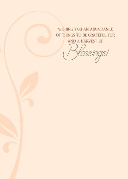 Card inside says: WISHING YOU AN ABUNDANCE OF THINGS TO BE GRATEFUL FOR AND A HARVEST OF Blessings!
