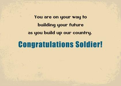 Card inside says: You are on your way to building your future as you build up our country. Congratulations Soldier!