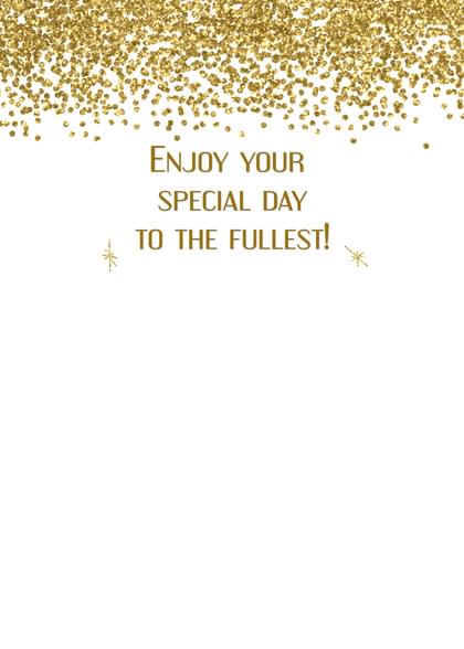 Card inside says: ENJOY YOUR SPECIAL DAY TO THE FULLEST!