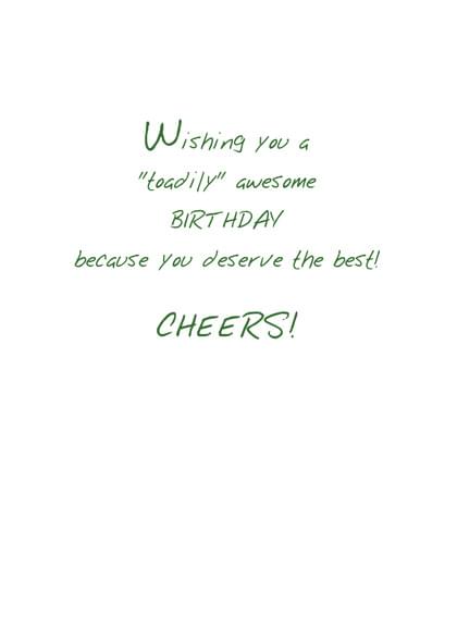 Card inside says: Wishing you a "toadily" awesome BIRT HDAY because you deserve the best! CHEERS!