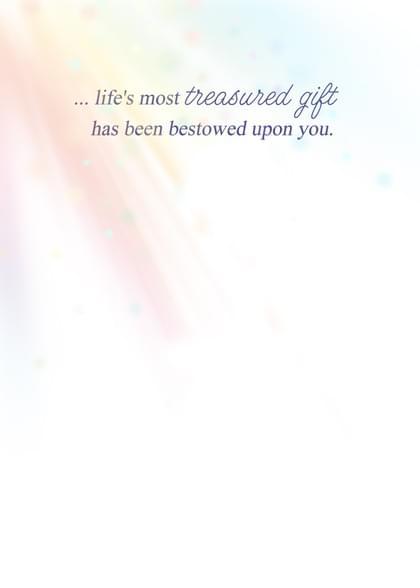Card inside says: life's most treasured gift has been bestowed upon you.