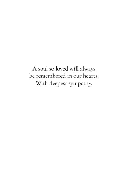 Card inside says: A soul so loved will always be remembered in our hearts. With deepest sympathy.