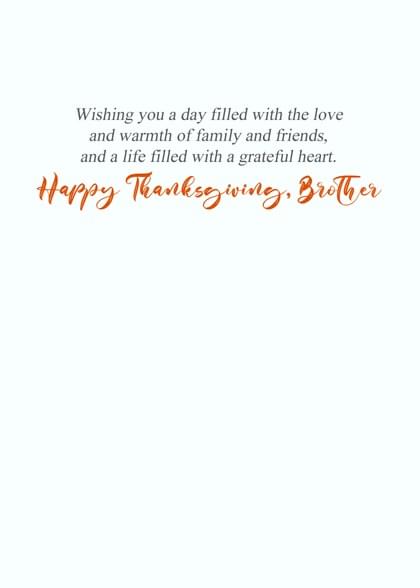 Card inside says: Wishing you a day filled with the love and warmth of family and friends, and a life filled with a grateful heart. Happy Thanksgiving, Brother