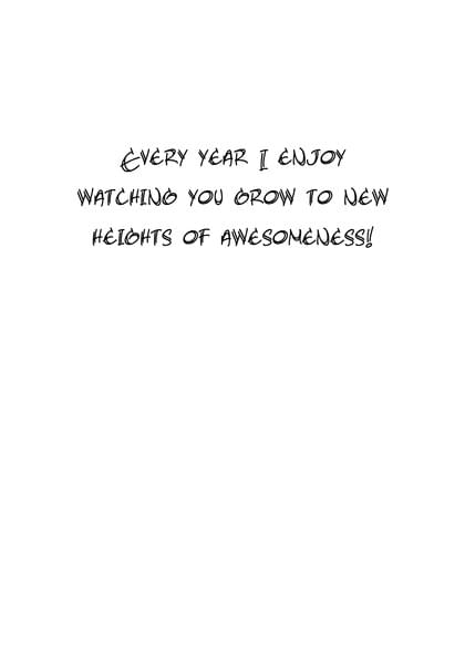 Card inside says: EVERY YEAR I ENJOY WATCHING YOU GROW TO NEW HEIGHTS OF AWESOMENESS!
