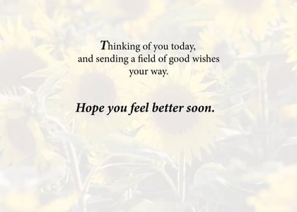 Card inside says: Thinking of you today, and sending a field of good wishes your way. Hope you feel better soon.